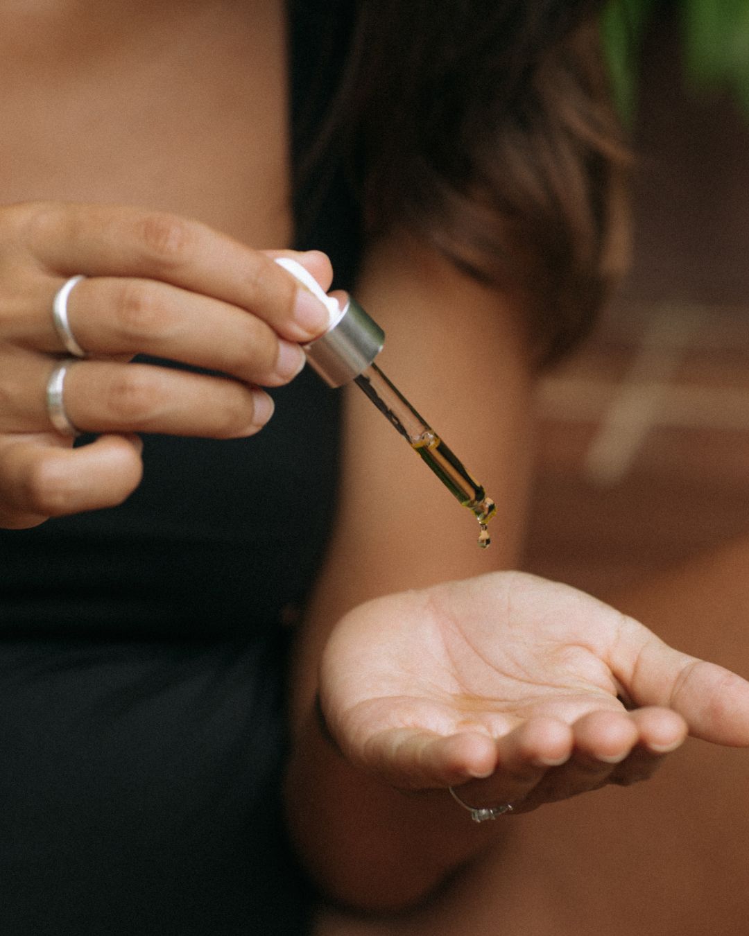 Apply 3–6 drops of the Dry & Damaged Hair Oil into your palms and warm it between your hands.